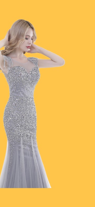Elegant shiny platinium sequin banquet dress. Item number 020